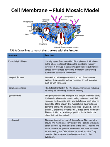 The description and function of the cell membrane is something we the cell membrane is a structure responsible for being the barrier between the outside environment and the inside components of a cell. Figure 7.10 some functions of membrane proteins. Worksheets are plasma membrane structure and function work, chapter 3 cellular structure. Cell membranes are made up of mainly lipids and proteins. The plasma membrane separates the living cell from its nonliving surroundings. Blocking hiv entry into cells as a treatment for hiv infections. Flashcards in membrane structure and function deck (32). Some of the functions of the cell membrane. Plasma membrane is the outermost covering of the cell that separates the contents of the cell from its external environment. When a carbohydrate chain is attached to a protein when a carbohydrate is attached to a phospholipid, what is the structure called? Periodic table worksheets answers chemistry. They are made up of amino acids and do work related to the structure, function, and. Individuals investigate the relationships between cells structure and function given their relative locations on the cell membrane.